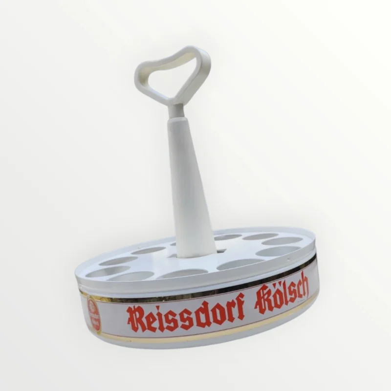 Mieten Sie unseren praktischen Bierkranz aus stabilem Kunststoff, der speziell für den sicheren Transport von bis zu 11 Kölschgläsern entwickelt wurde. Robust, funktional und stilvoll – die ideale Lösung für Ihre nächste Feier, Veranstaltung oder Gartenparty.