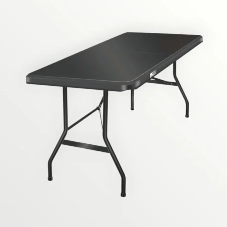 Die Tischplatte besteht aus wetterfestem Kunststoff, das Gestell aus stabilem Stahl – für hohe Belastbarkeit und sicheren Stand, sowohl drinnen als auch draußen.