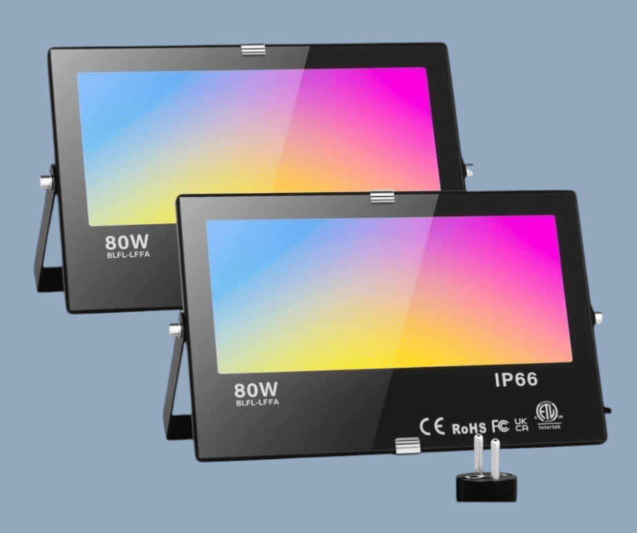 Der Strahler ist dimmbar. Er hat eine Leistung von 80 Watt LED (800 Watt Äquivalent). Es stehen 16 Millionen Farben zur Auswahl. Auf Wunsch reagiert das licht auf die Musik. Mehrere Strahler können sich untereinander synchronisieren.